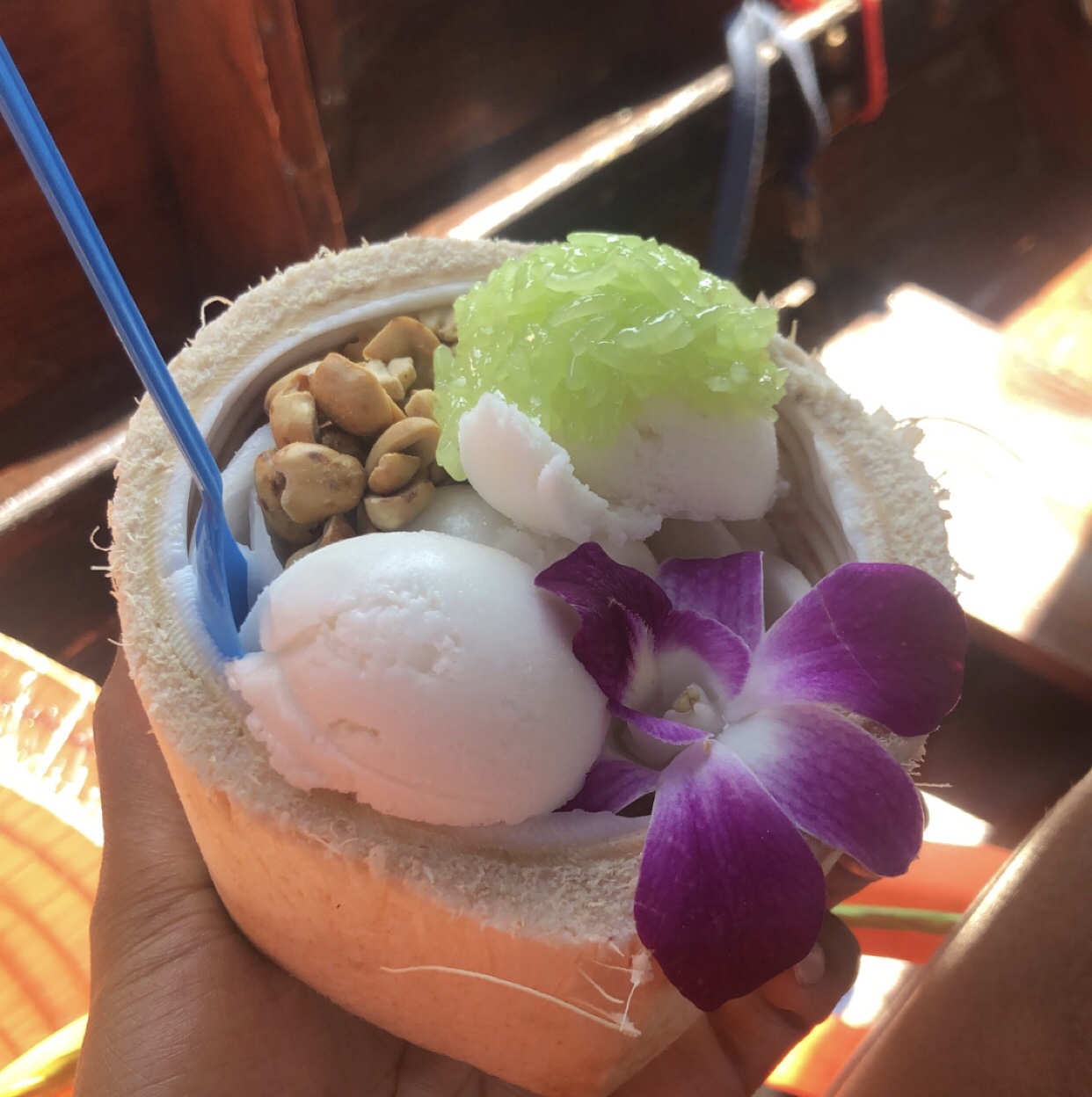 Damnoen Saduak Floating Market – Damneon is one of the more well known Floating markets and although it sits about an hour outside of Bangkok it is one of the most popular floating markets in the area. One of the things I admired most about this market was the vast majority of women working and providing for their families by selling various goods, foods, and/or services.  As you travel through the market in your long tail boat, be prepared to bargain and don’t be bashful about it! If you don’t do anything else, try the coconut ice cream! It was delicious! http://www.tigertemplethailand.com